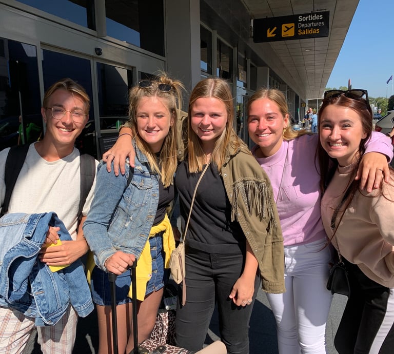 Welcoming at the airport with shared transfers of groups of 5 students or more.